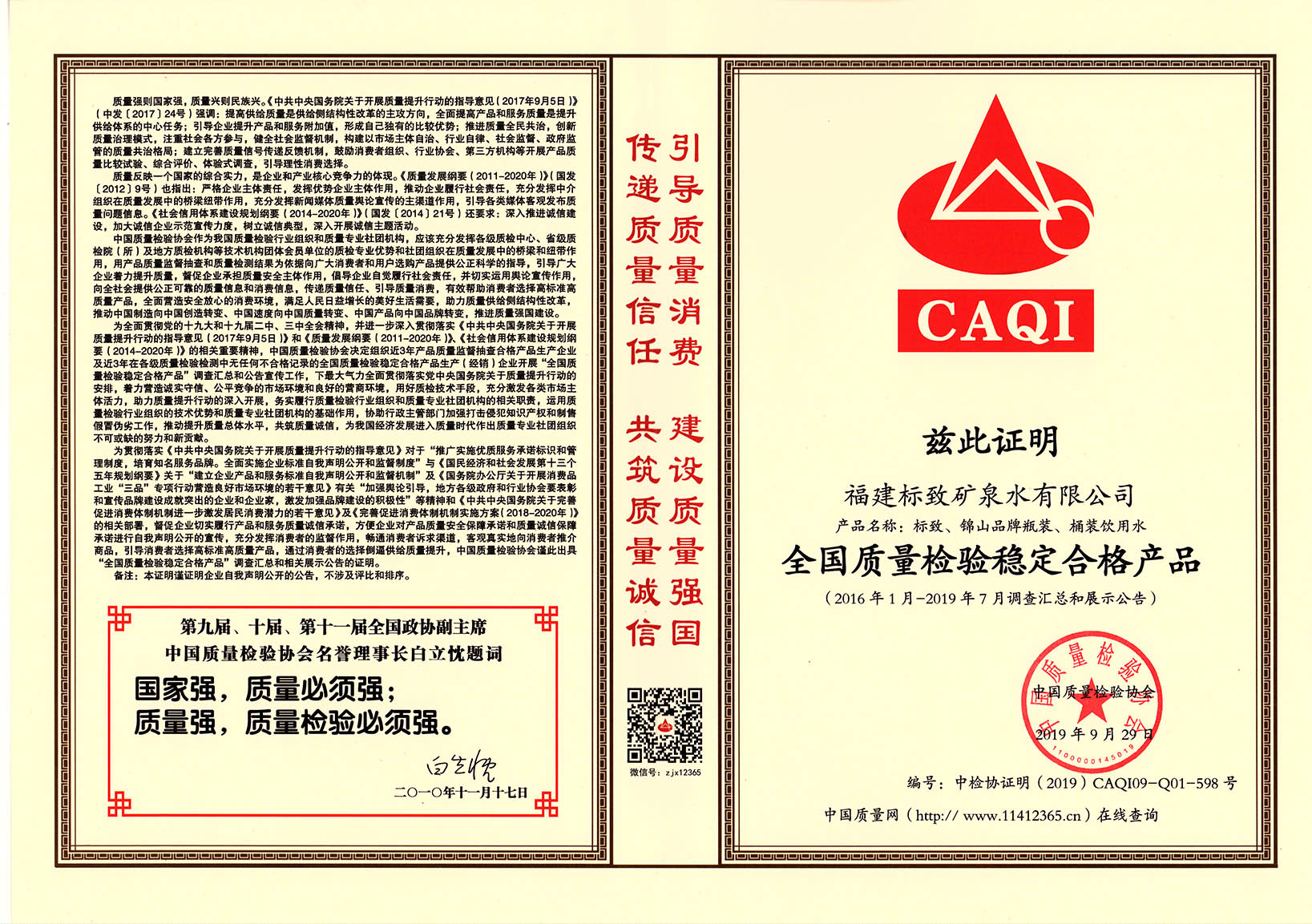 • 2020-03-252019年9月,標致公司榮獲“全國質(zhì)量檢驗穩(wěn)定合格產(chǎn)品”稱號
