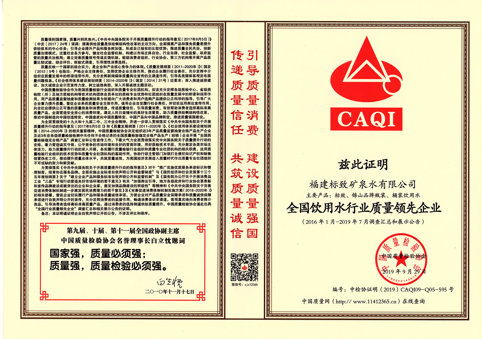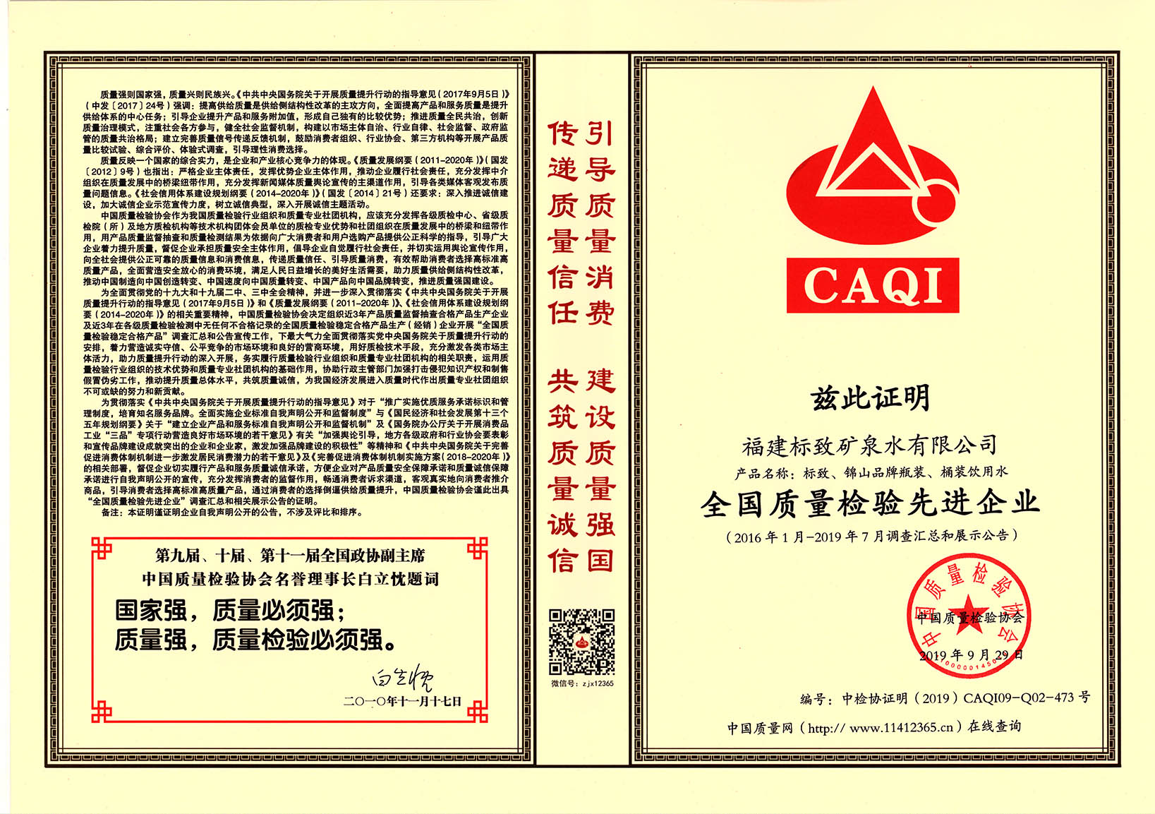 • 2020-03-252019年9月,標致公司榮獲“全國質(zhì)量檢驗先進企業(yè)”稱號