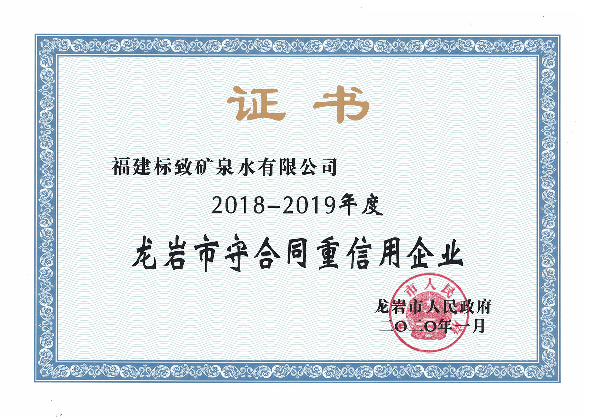 • 2020-06-162020年1月,標致公司榮獲“2018-2019年龍巖市守合同重信用企業(yè)”稱號